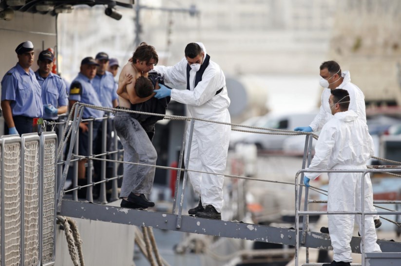 Sobreviventes do naufrágio chegam ao porto de La Valetta, um